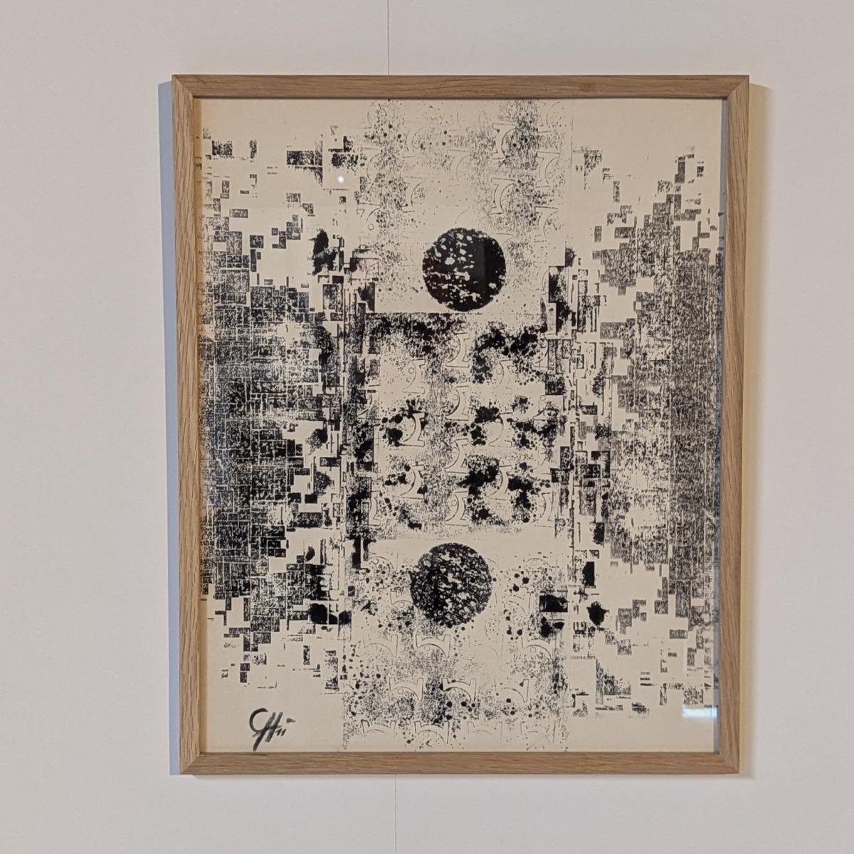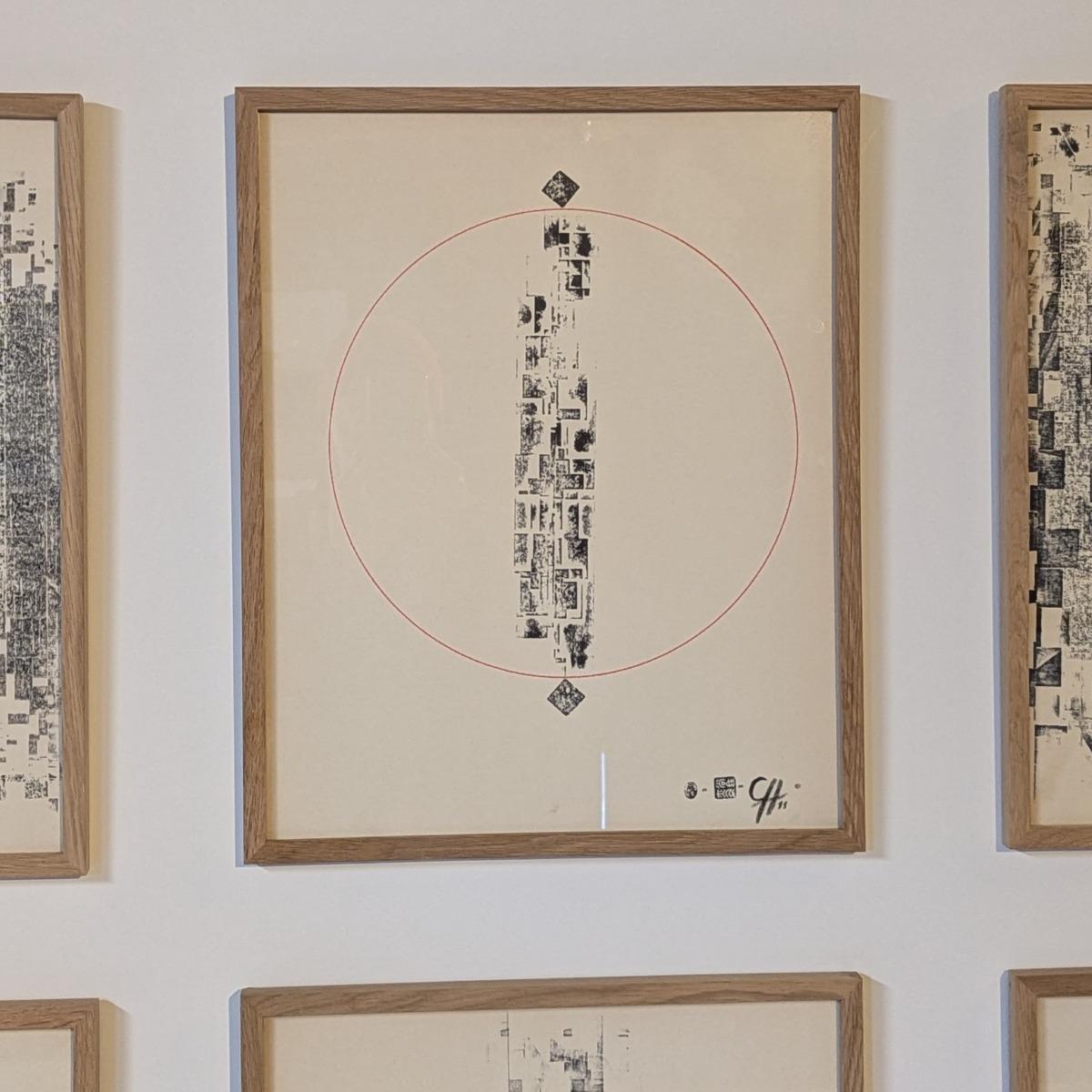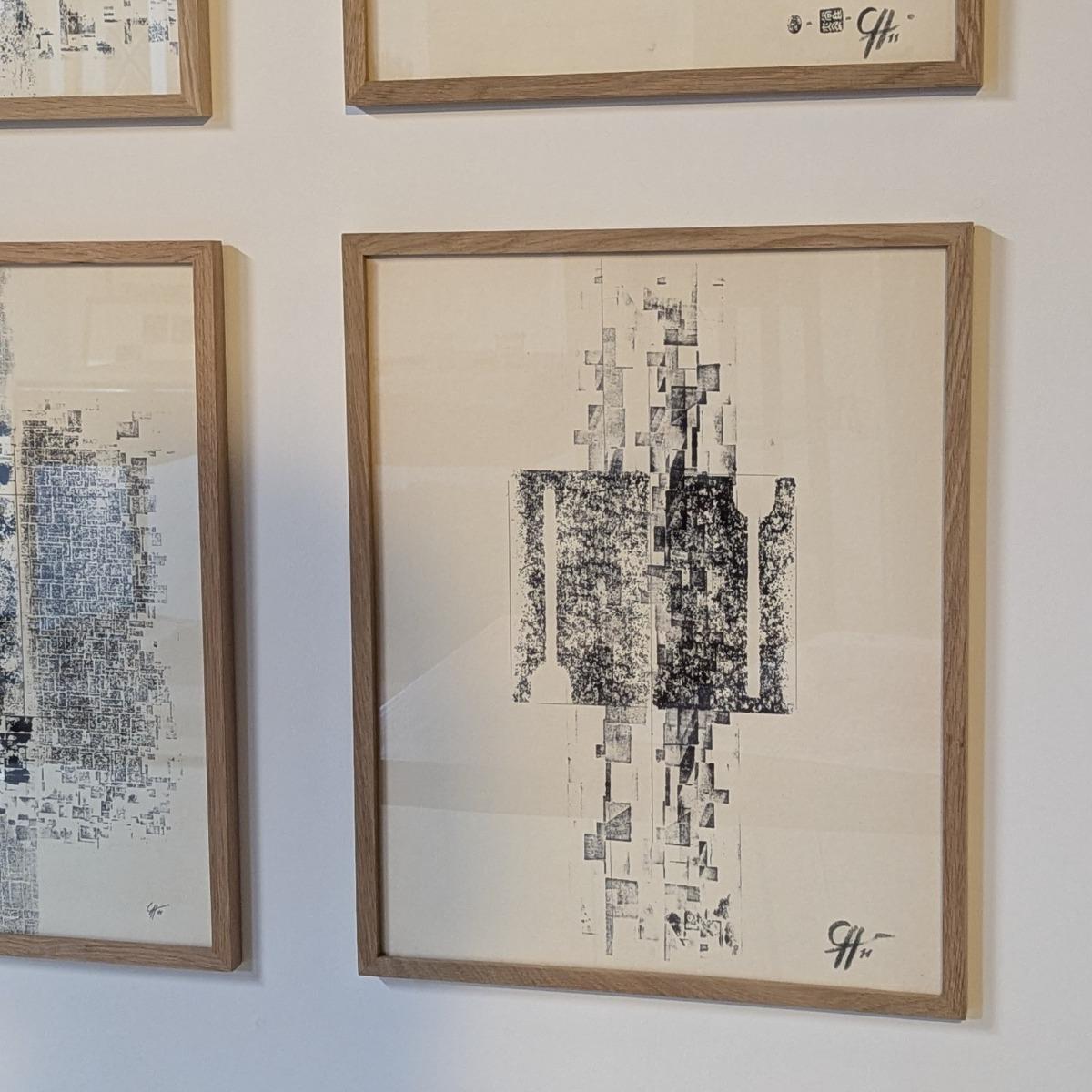 oeuvres graphiques signées de JM Chourgnoz (1929/2019). photographe officiel de la marine française, designer graphique et artiste plasticien. Encadrement neuf en chêne.