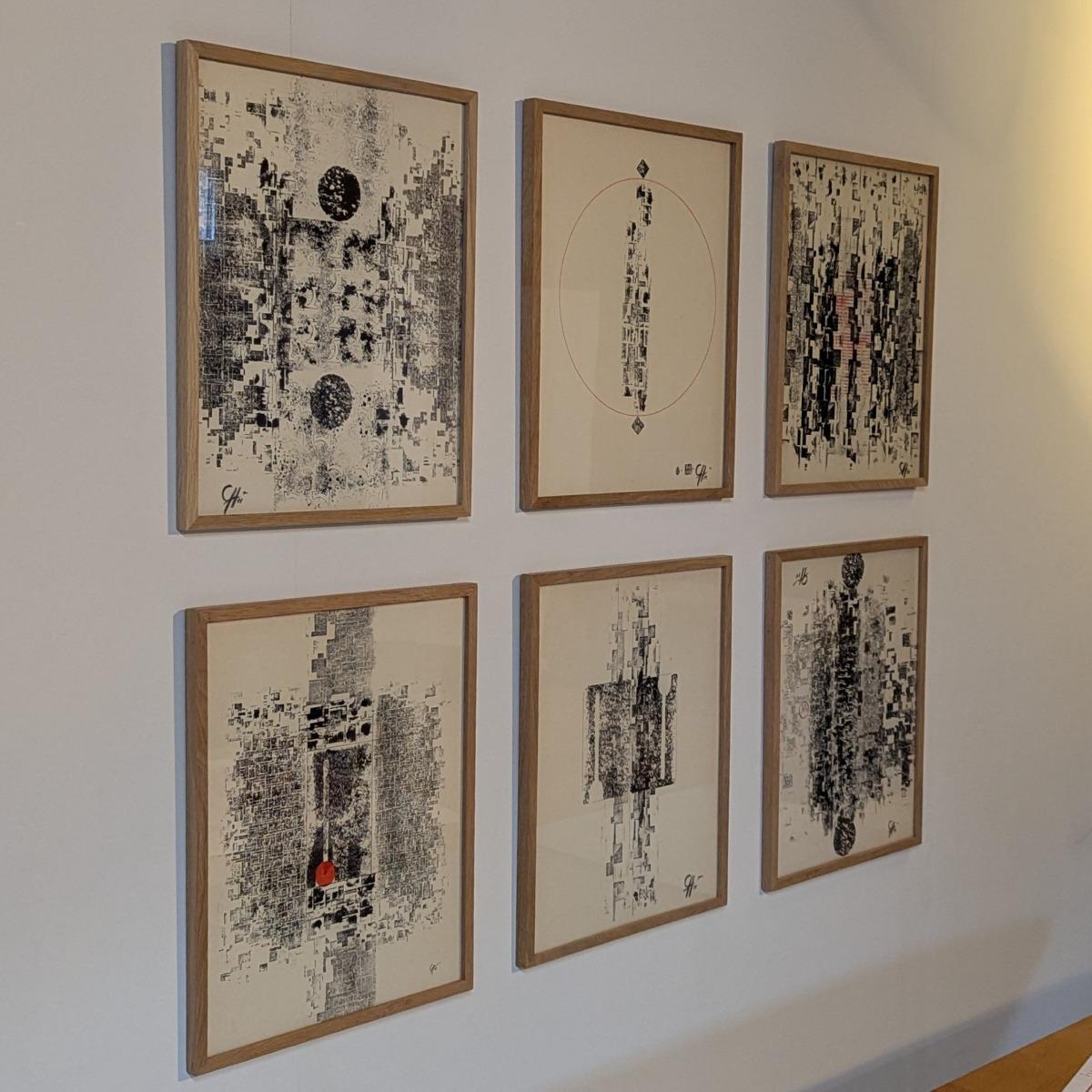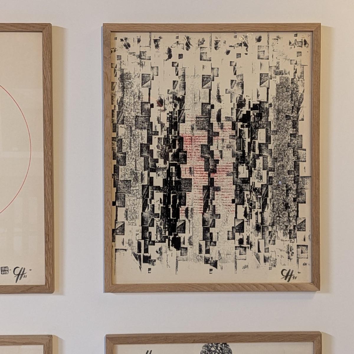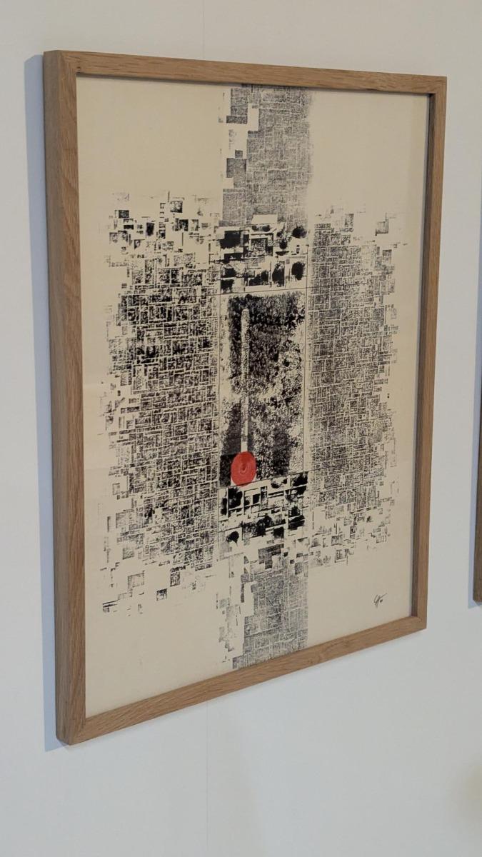 oeuvres graphiques signées de JM Chourgnoz (1929/2019). photographe officiel de la marine française, designer graphique et artiste plasticien. Encadrement neuf en chêne.