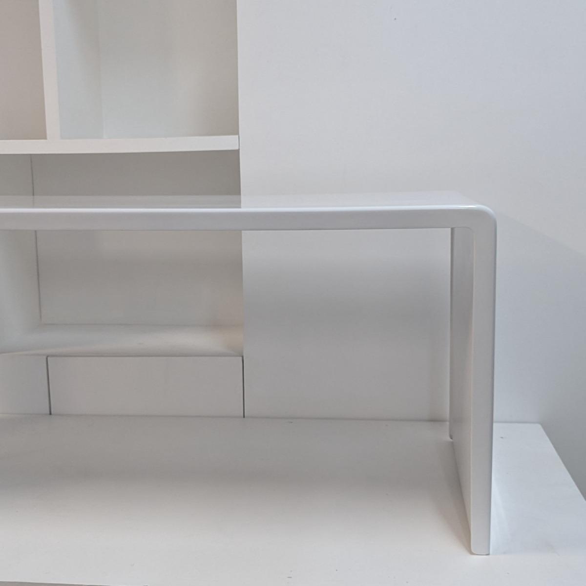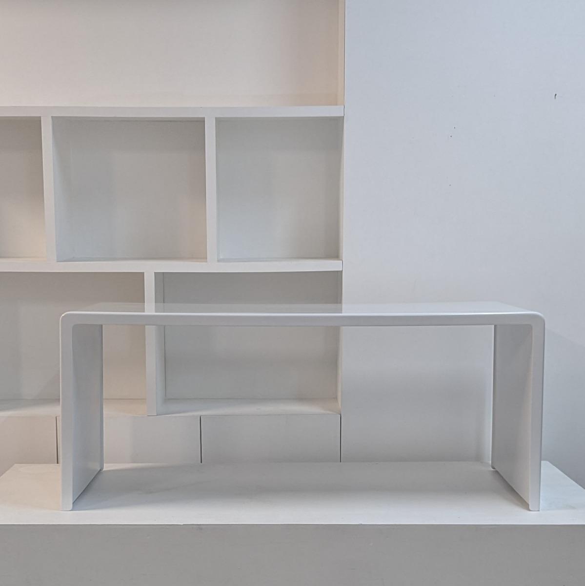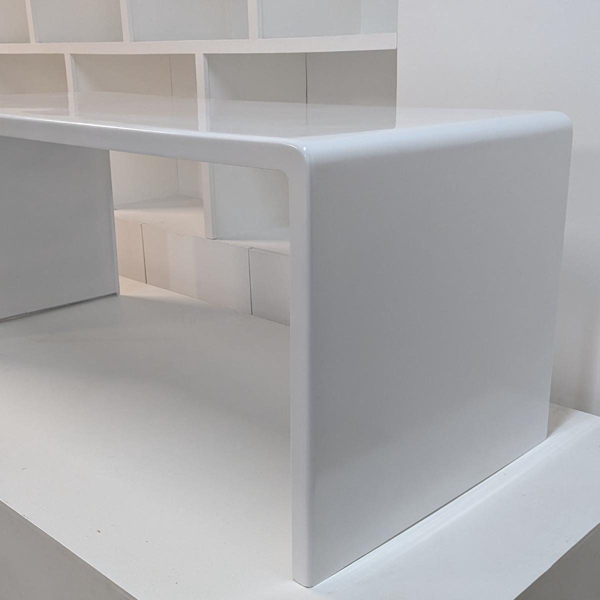 Table ou bureau modèle Brazilia de Berthe Libert édité par Les Hucher Minvielle en 1969. Le bureau a été relaqué en blanc et donc en trés bon état. Fibre de verre.