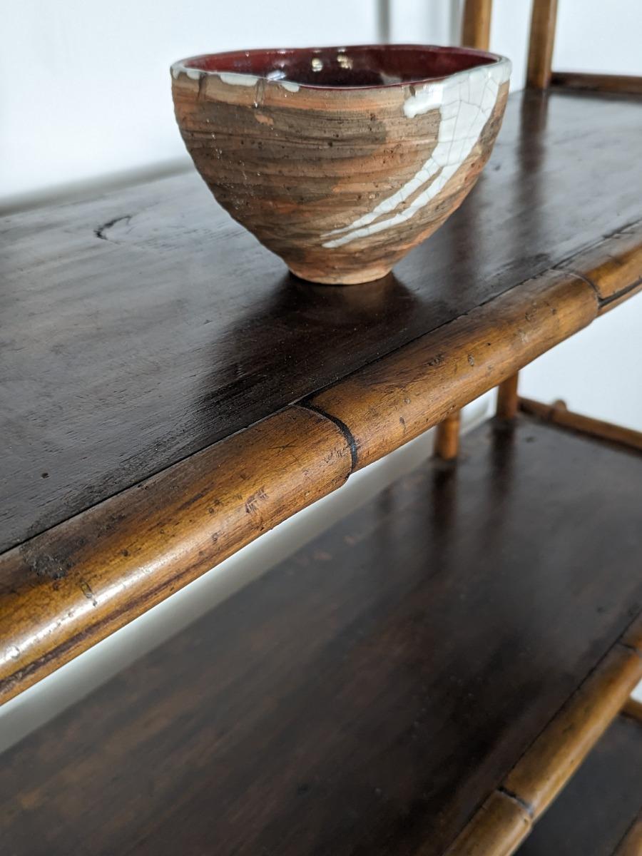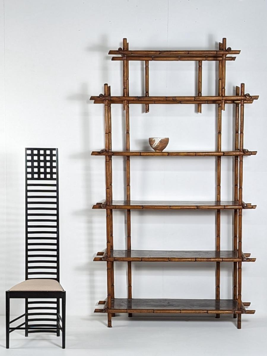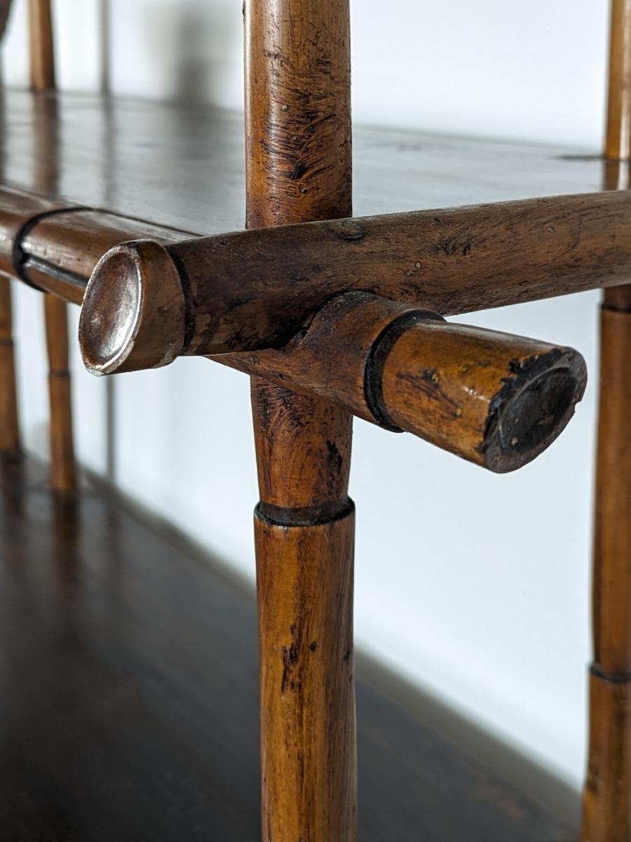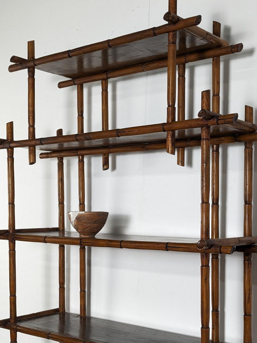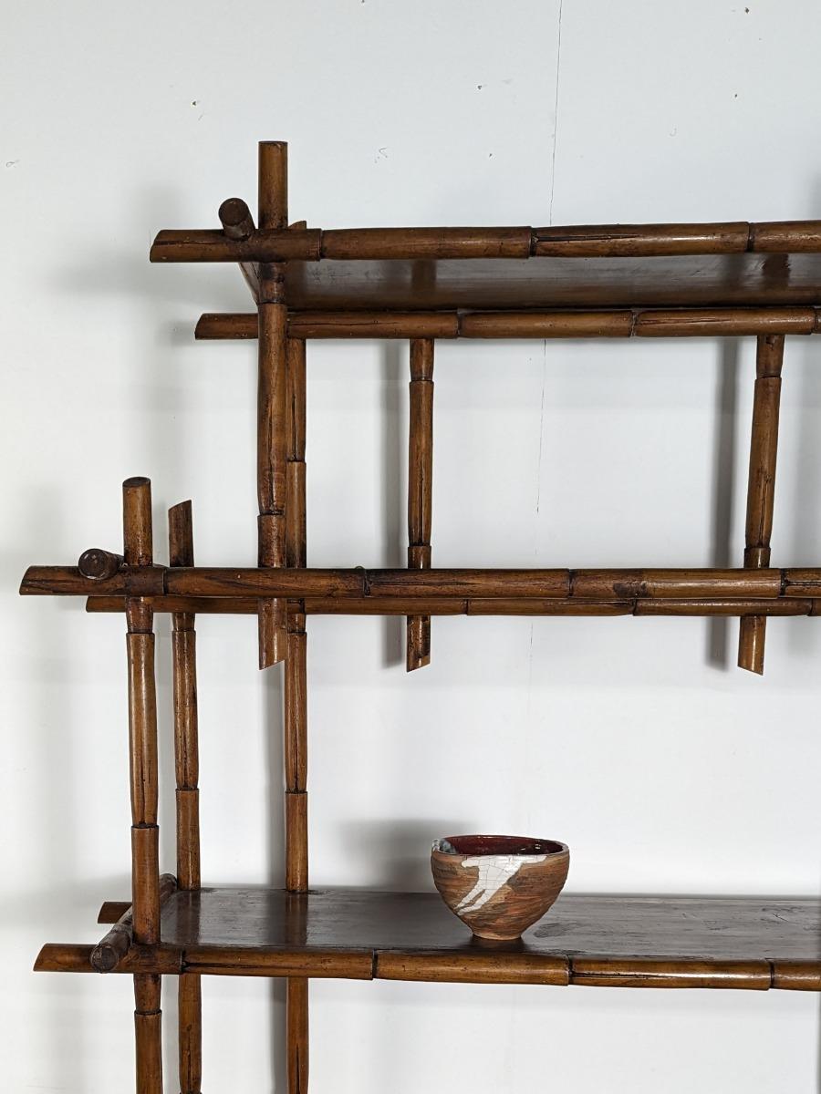 Étagère/ bibliothèque en bambou, début 20th siècle, provenance : Italie. A fixer au mur pour une plus grande stabilité. Jolie patine du temps.