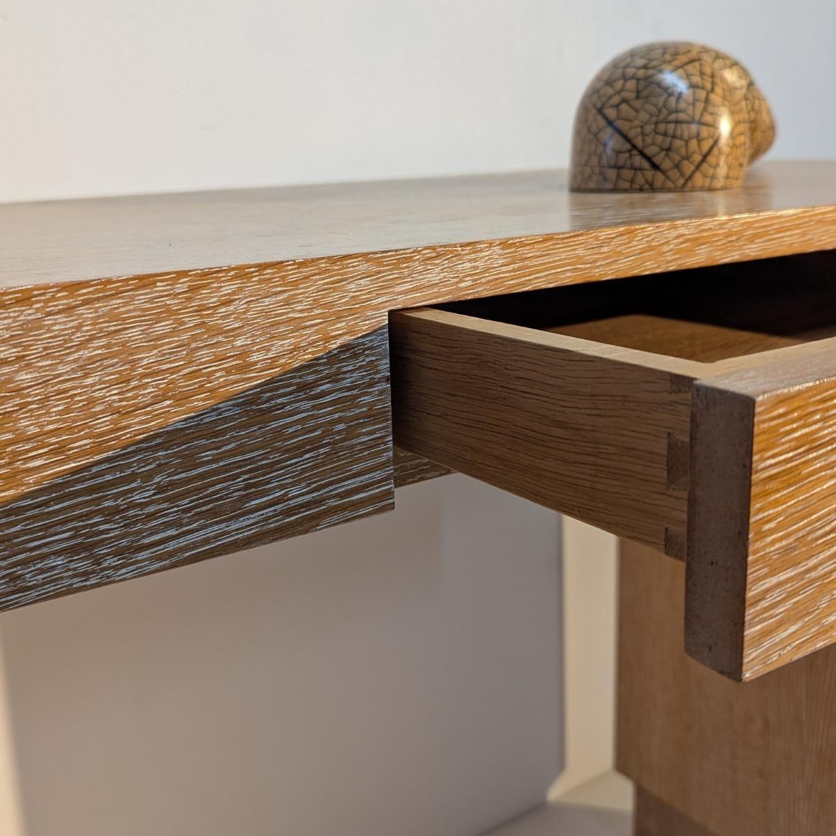 Bureau ou console en chêne cérusé