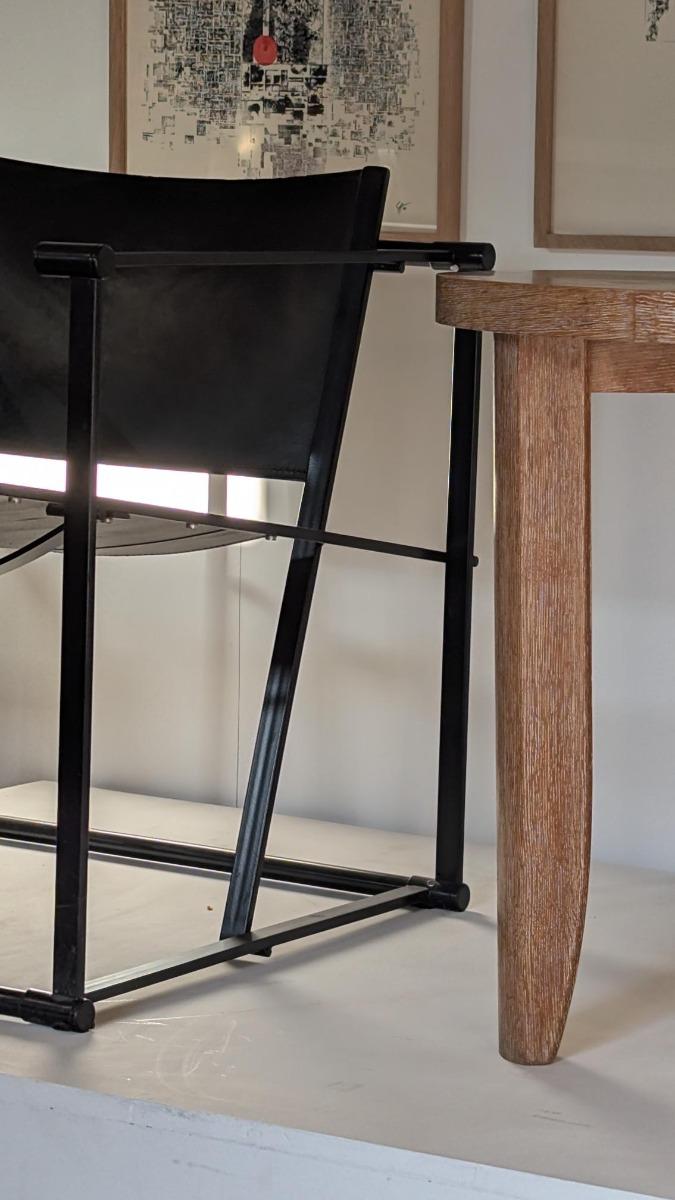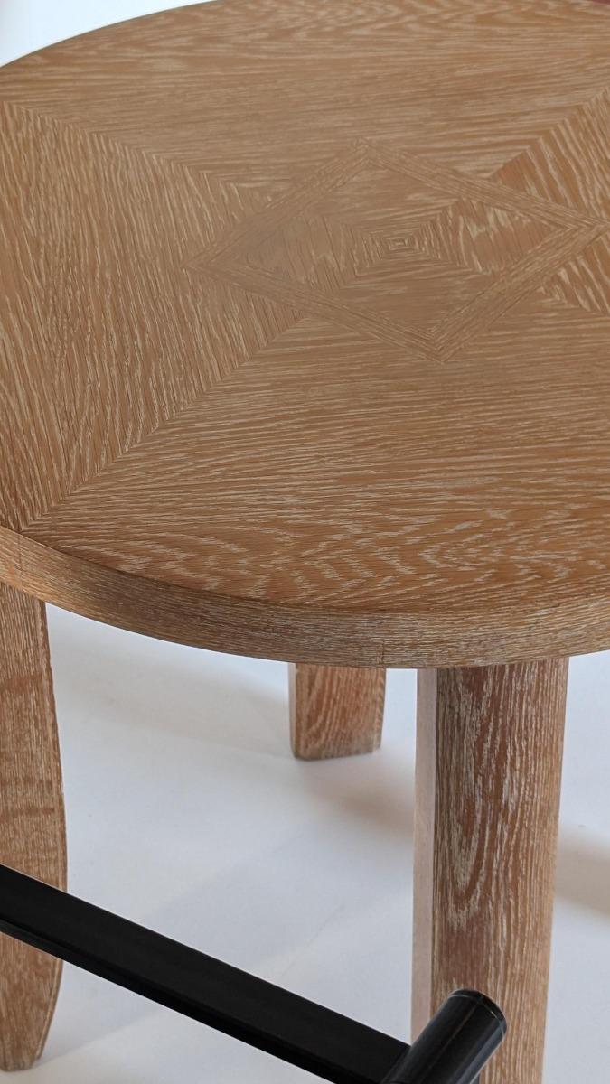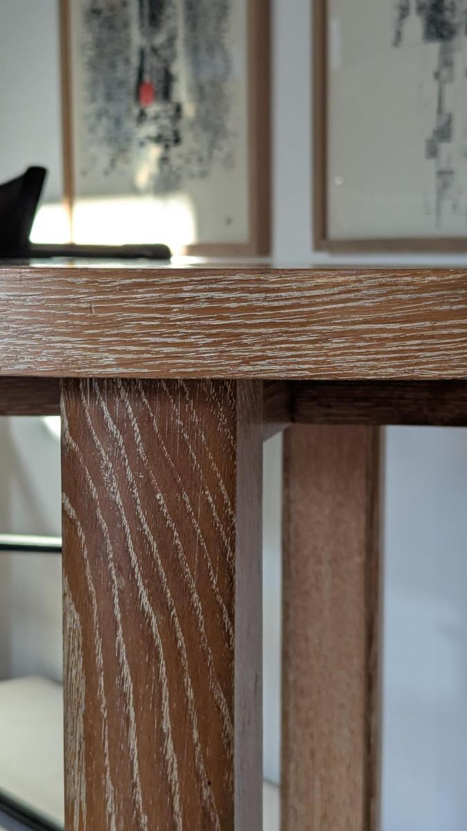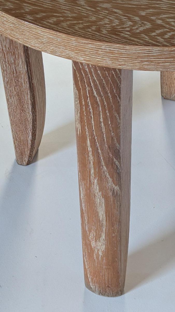 Guéridon en chêne cérusé, années 50. En bon état d'origine, quelques traces normales d'usure