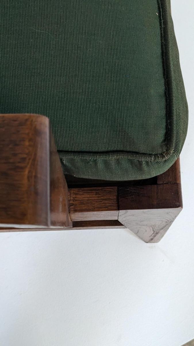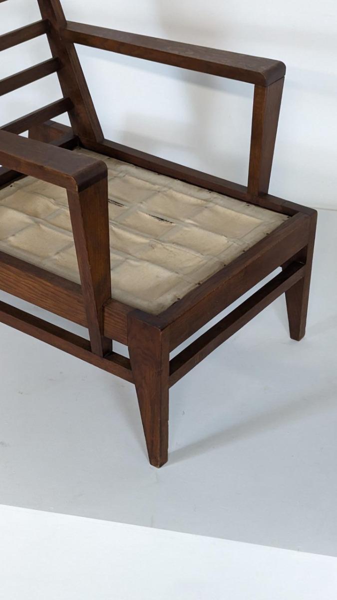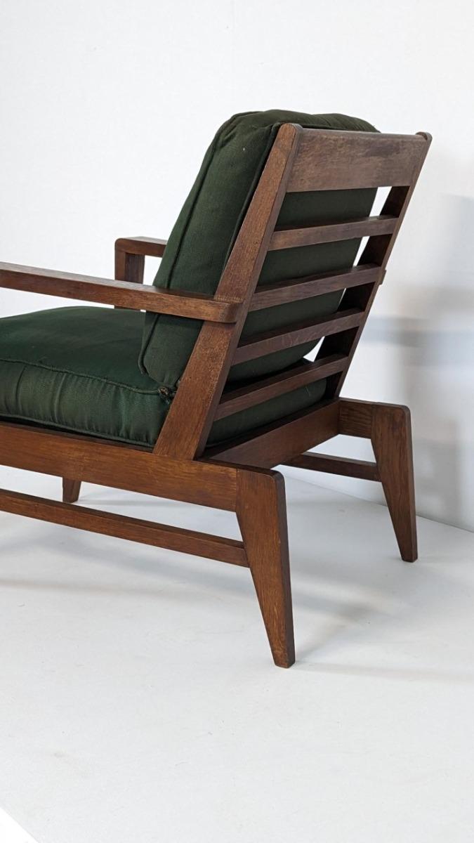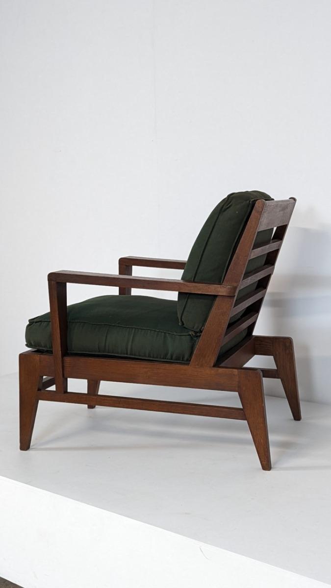 Fauteuil design René Gabriel, designer de la période dite de la reconstruction, années 50. En état d'origine, coussins compris. En chêne. H Dossier 79cm H assise 45cm larg. 56cm Prof. 83cm