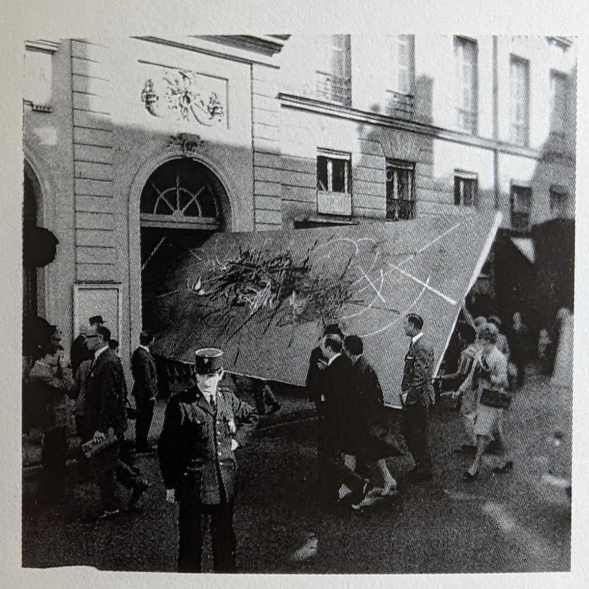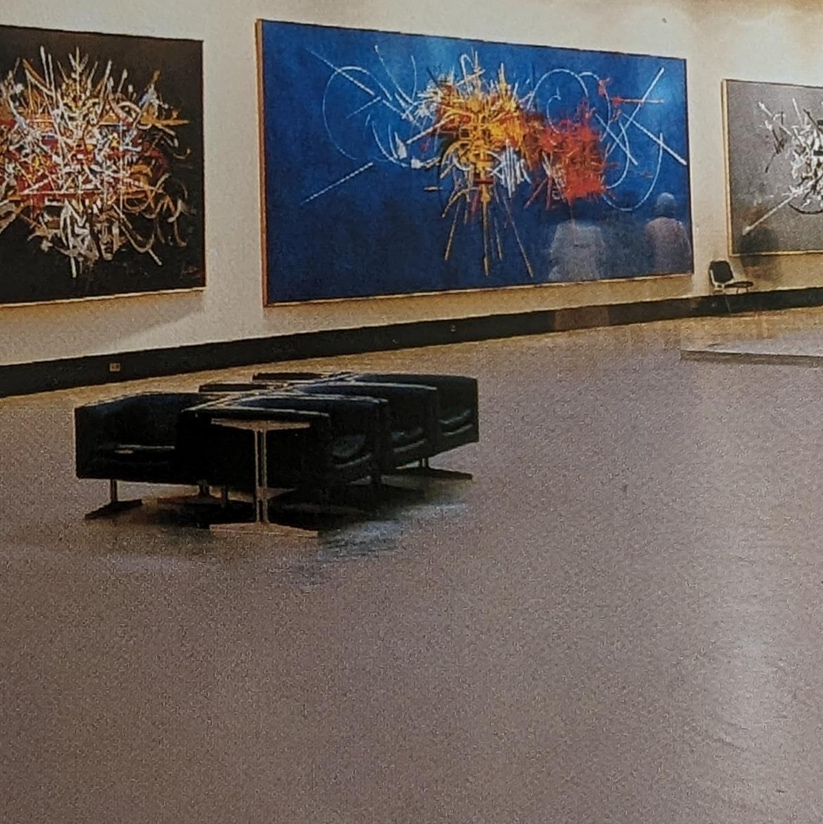 Al'origine, cette oeuvre intitulée "Paris Capitale des Arts" fut peinte par Georges Mathieu dans le cadre d'une exposition qui lui fut consacrée à la Galerie Charpentier à Paris en 1965 (aujourd'hui siège de Sothebys). Monumentale, 900/300cm, la reproduction ici réalisée par Bernadette Faulin en 1982, mesure 200/70cm. Reproduction trés fidèle réalisée avec beaucoup de dextérité et de talents. Reproduction peinte sur toile en vue de l'offrir en cadeau.
