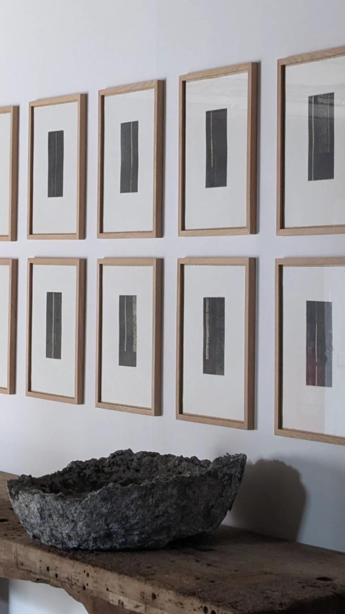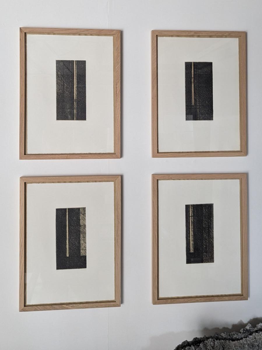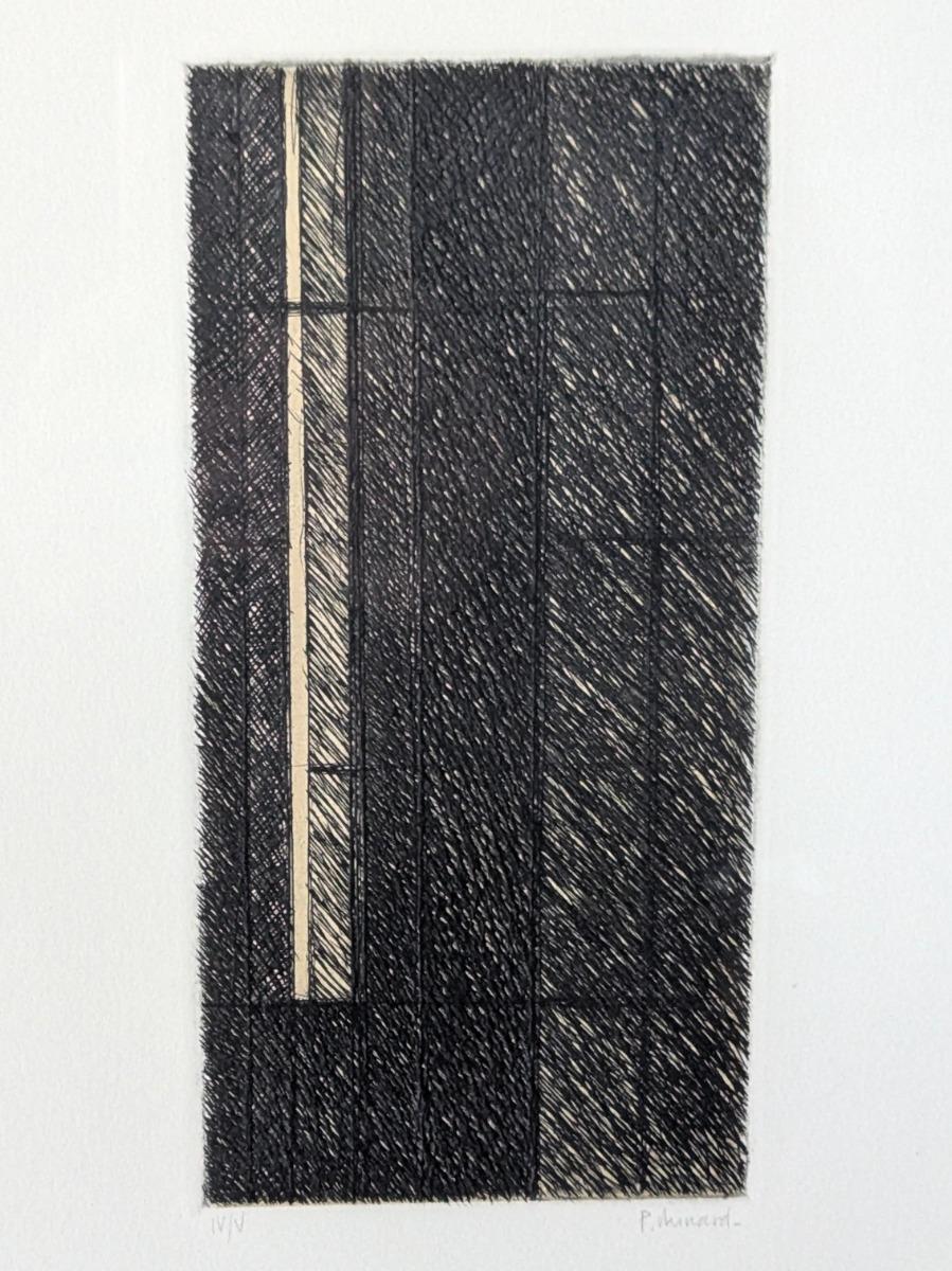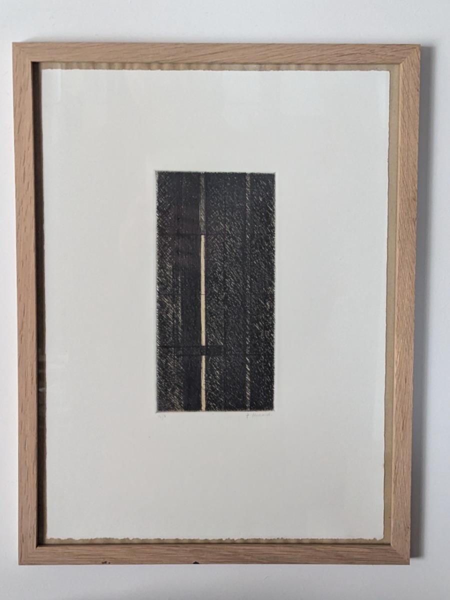 belle ensemble de 10 gravures par Philippe Minard (1956-), artiste graveur. Travail minimaliste, tirage limité à 5 exemplaires. Encadrement chêne.