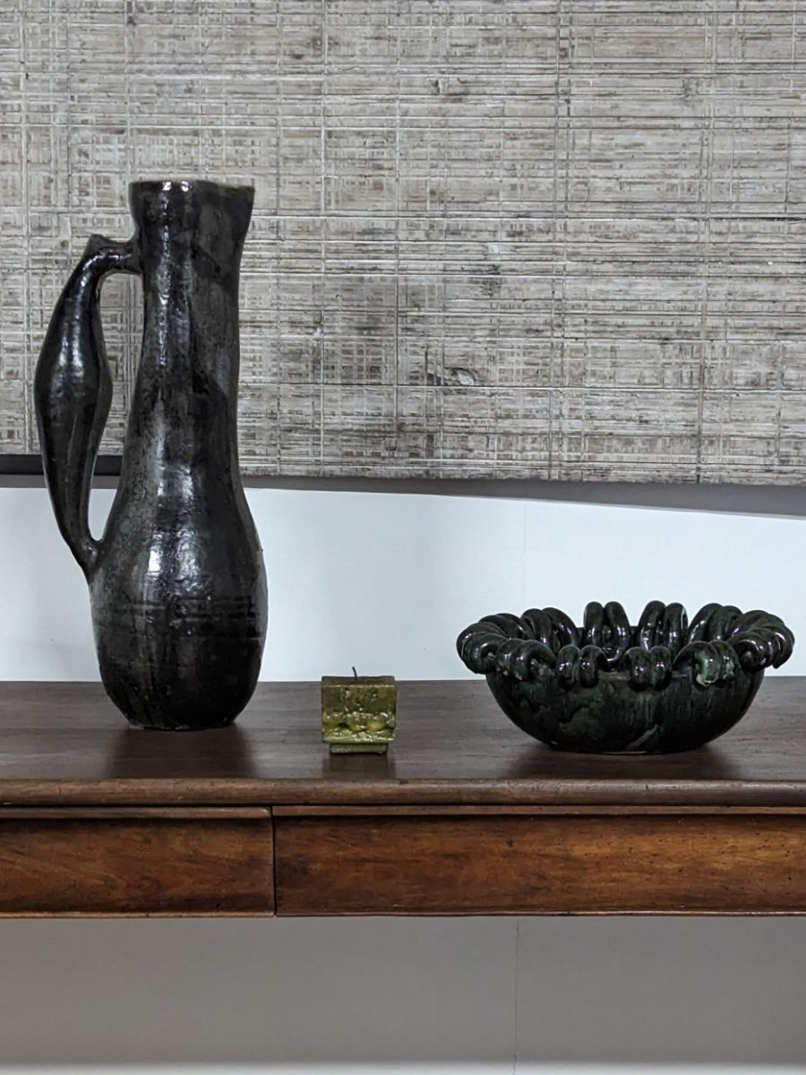 Grand pichet à l'allure zoomorphe du céramiste lillois Jean Brisy (1924/1991). Membre fondateur de l'atelier de la Monnaie à Lille. A collaboré également avec Guillerme et Chambron