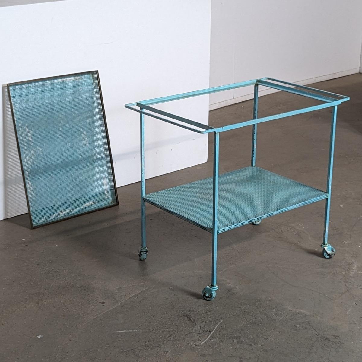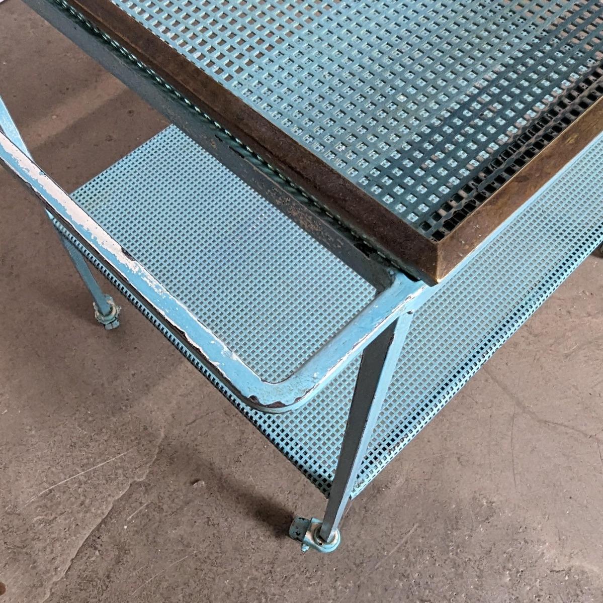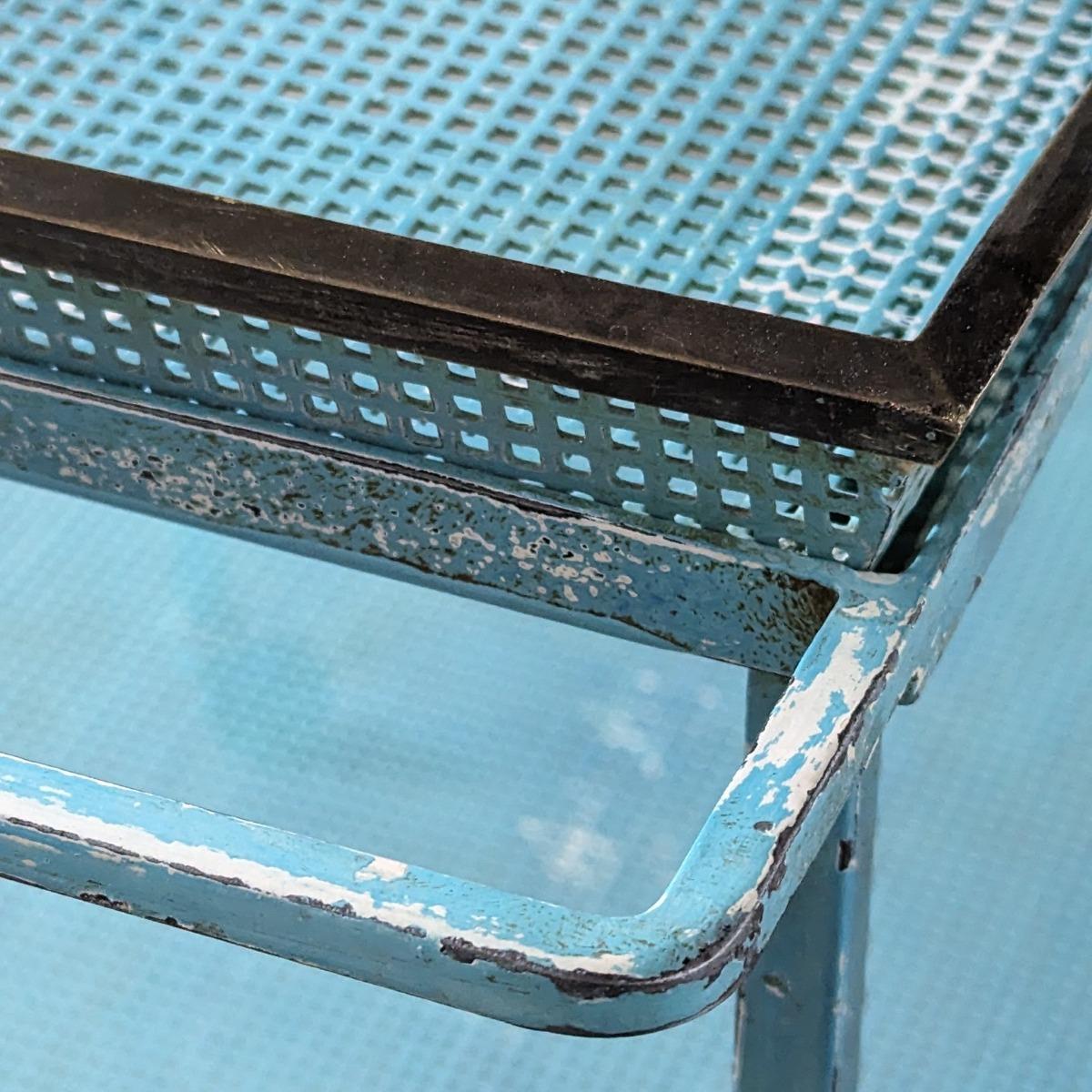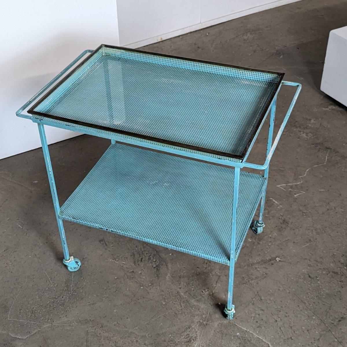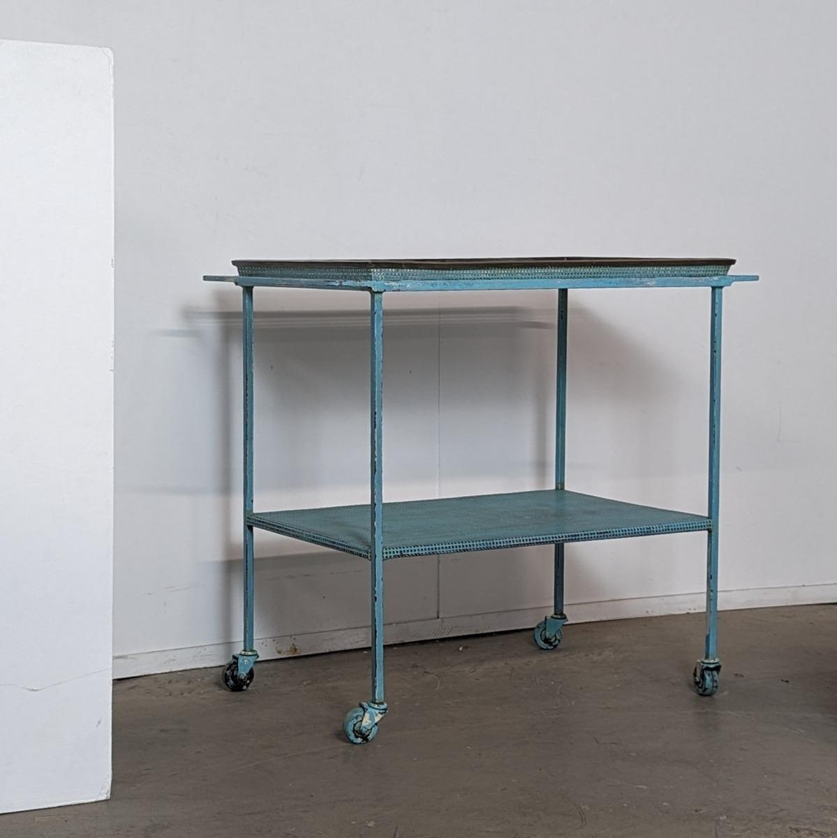 Mathieu Matégot, desserte vers 1950, couleur bleu ciel. bordure du plateau en laiton. Reprise dans Mathieu Matégot/ Jousse Entreprise/ modèle n° 50