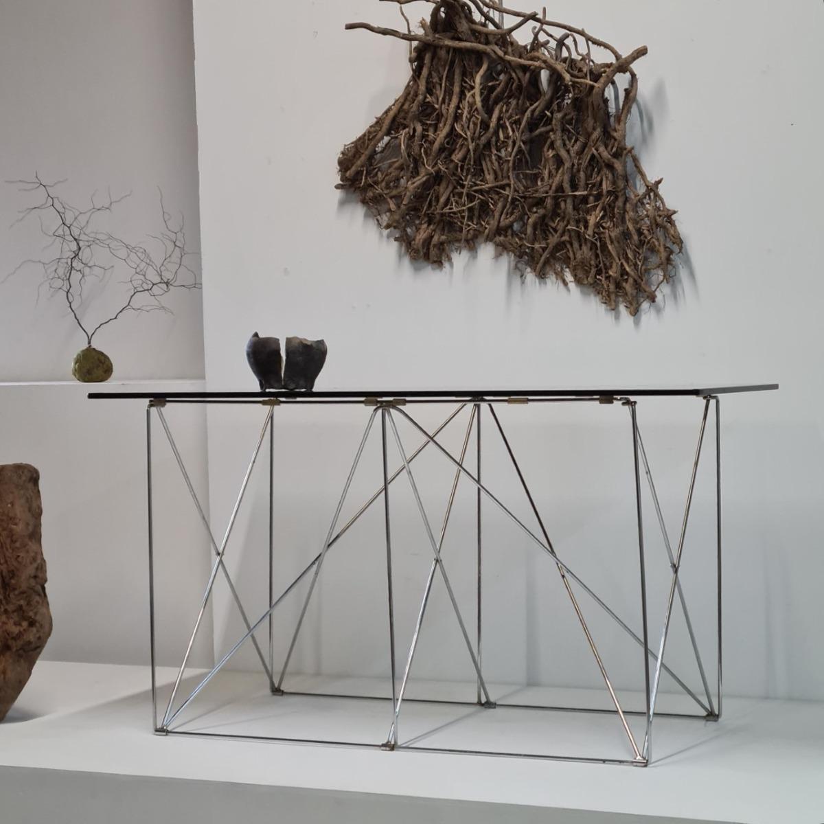 console au design graphique, par Max Sauze, années 60. en trés bon état, piètement pliable.
