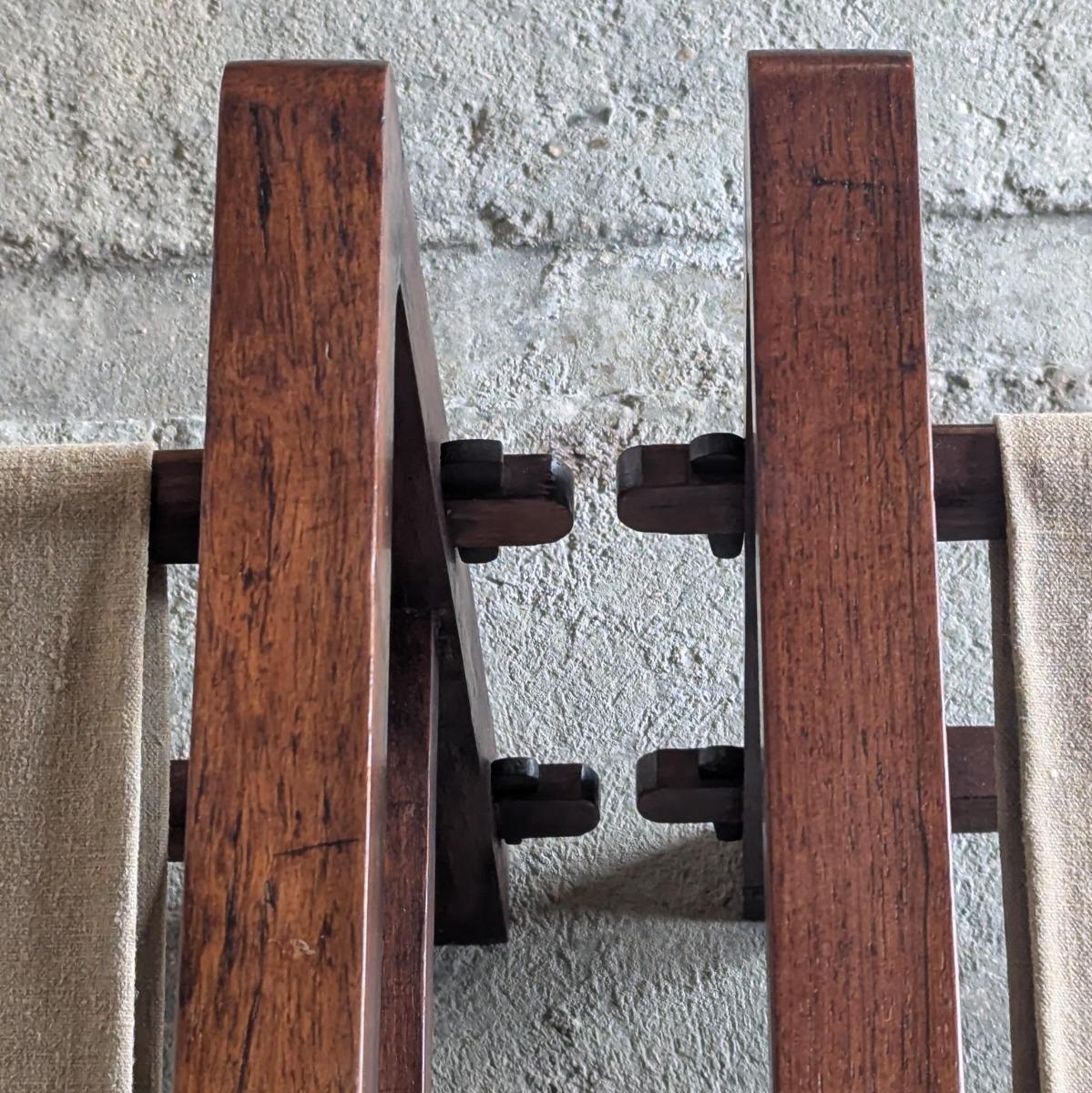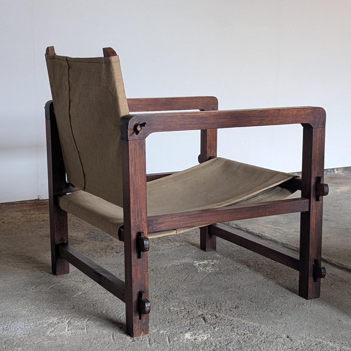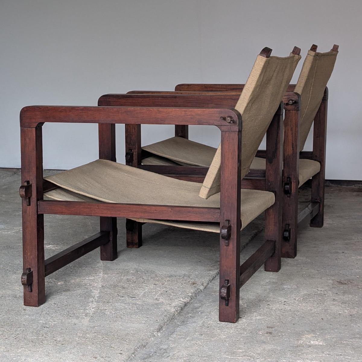 Paire de fauteuils dits Safari, fabrication française années 30. Trés stable et confortable, toile d'origine. Dossier inclinable. En trés bon état, quelques traces normales d'usage. Hauteur assise 35cm Hauteur dossier 73cm largeur 70cm Profondeur 62cm