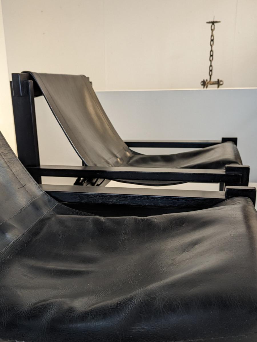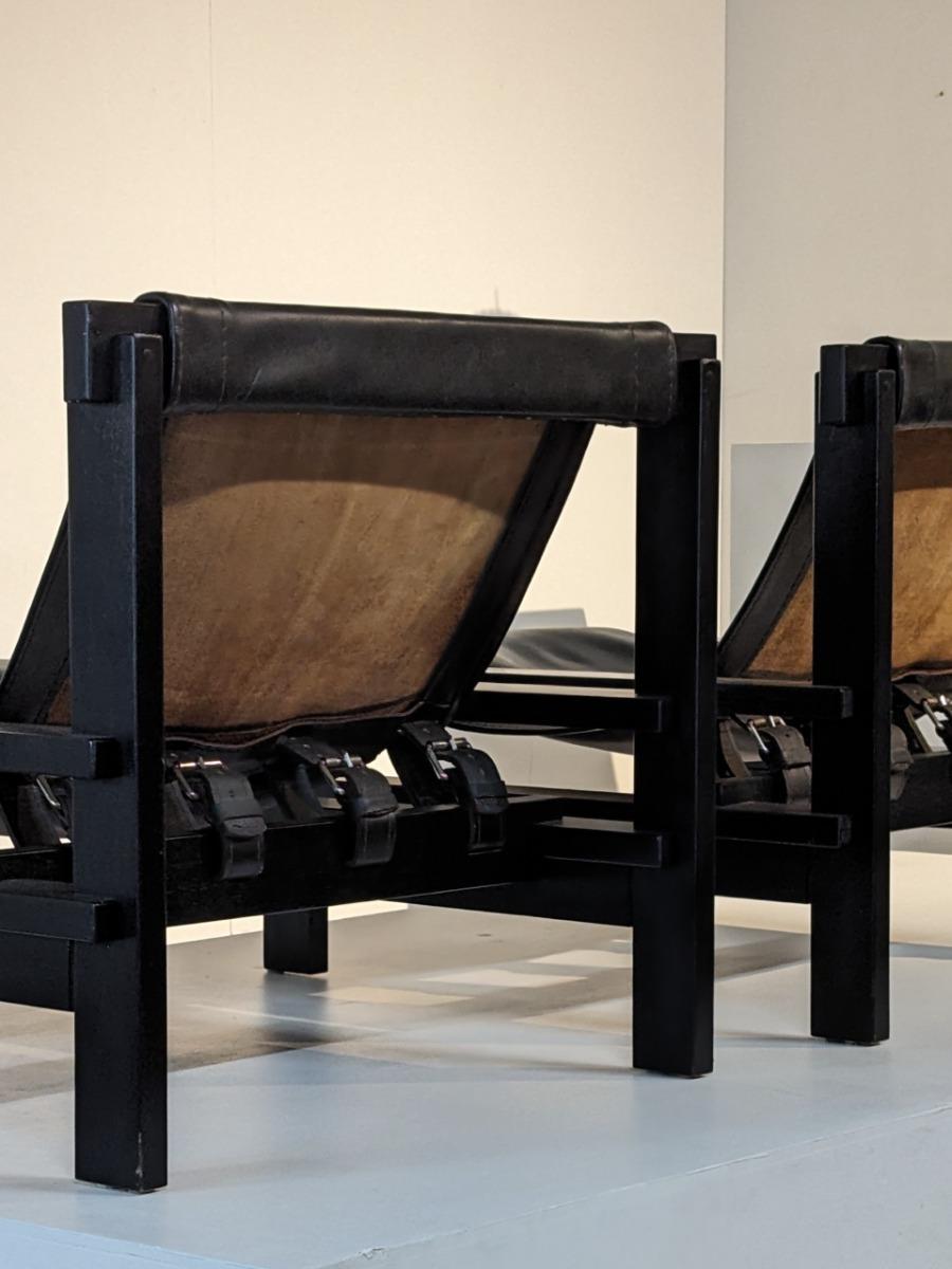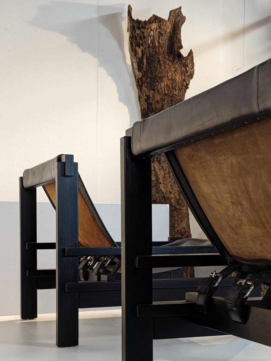 Paire de fauteuils au design constructiviste, attribuée à Soja Wasseur, designeuse hollandaise. Années 70/80, en trés bon état d'origine.
