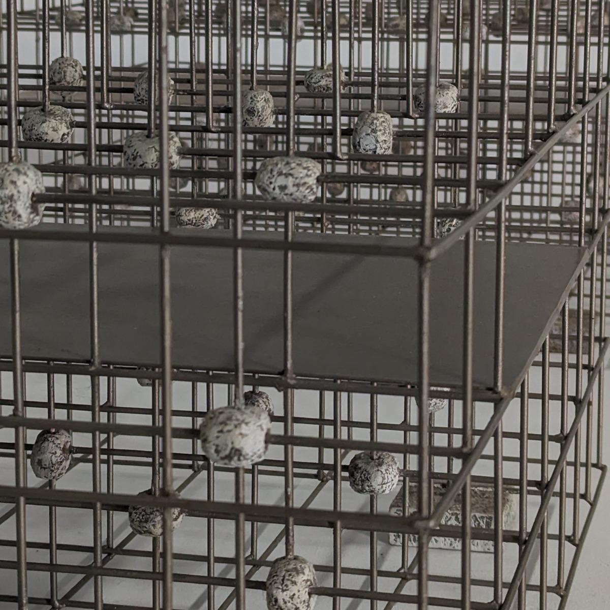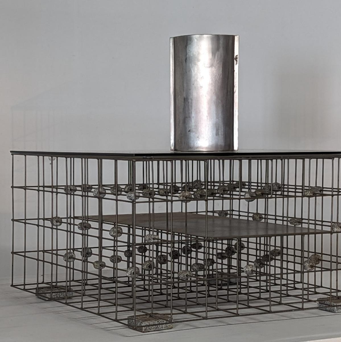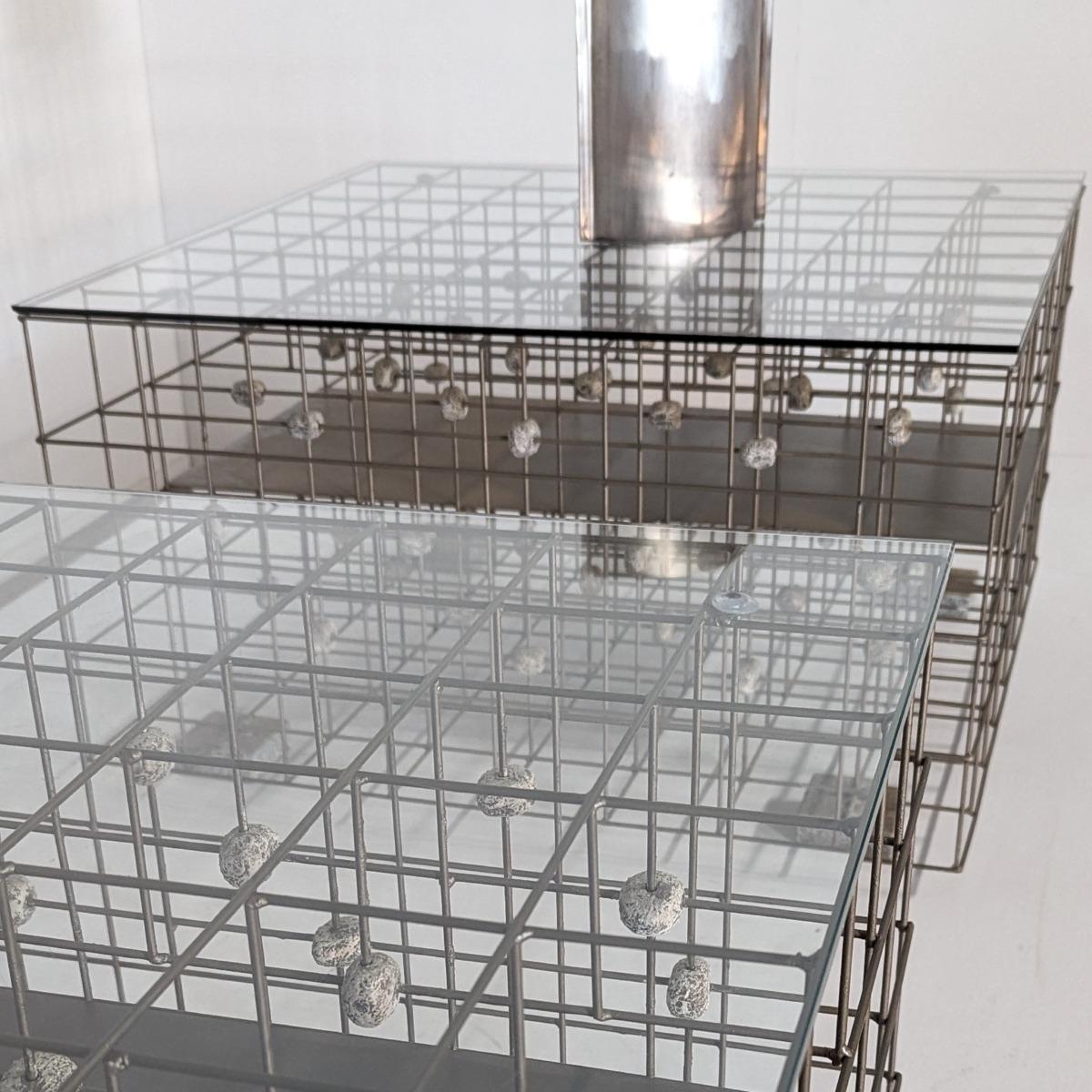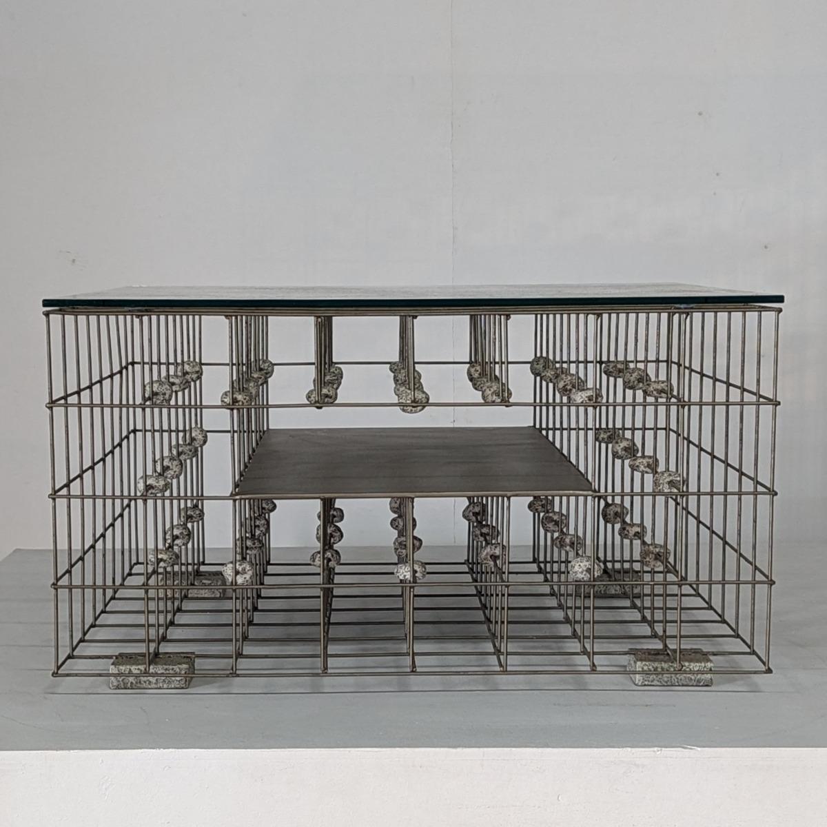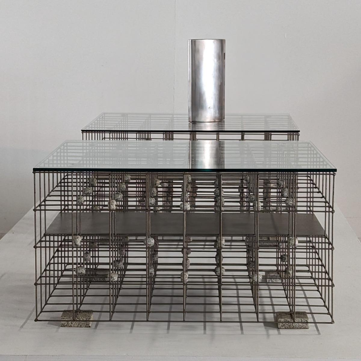 Paire de tables basses, travail d'artistes probablement des années 80/90. Non identifiées. Plateau en verre.