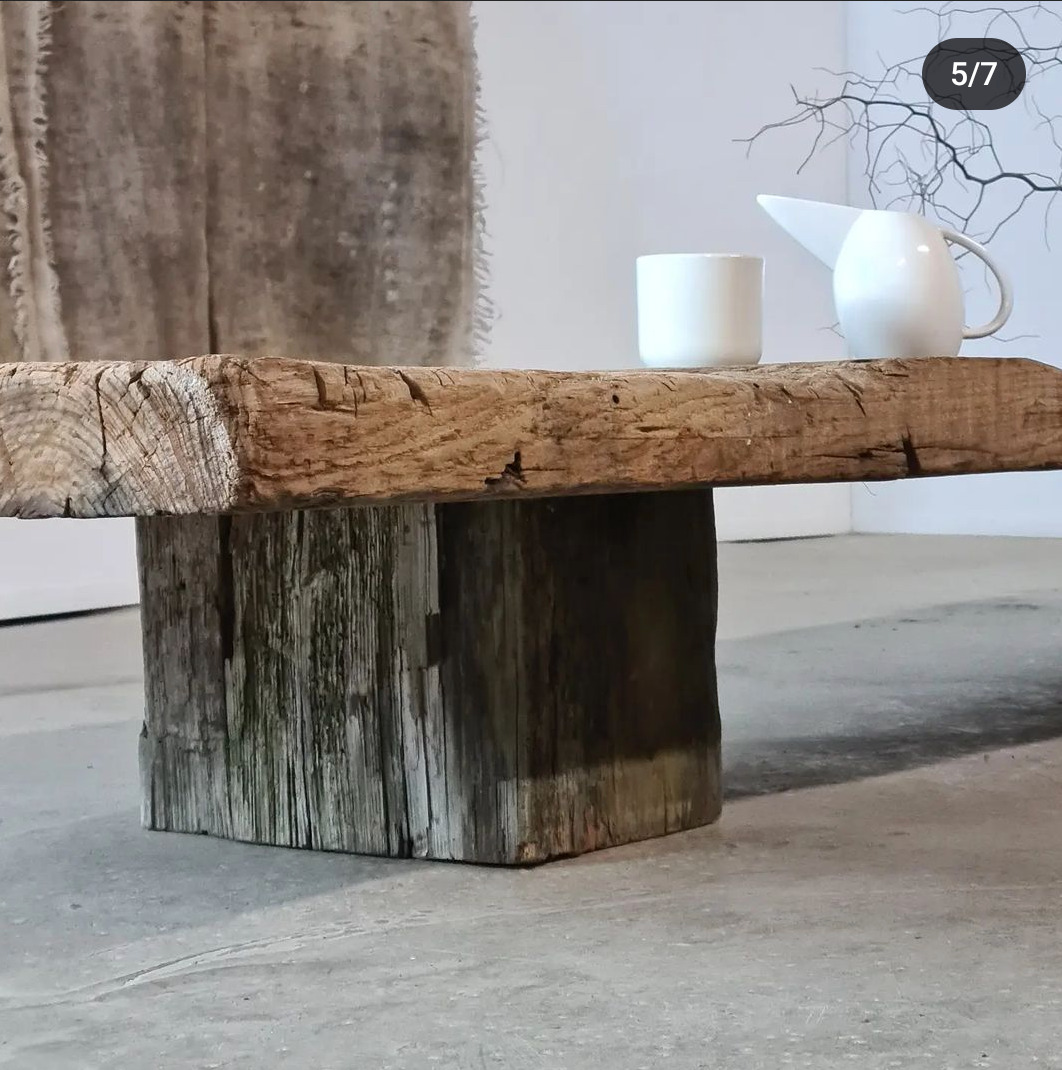 table basse primitive. Chêne. Epaisseur plateau 7 cm