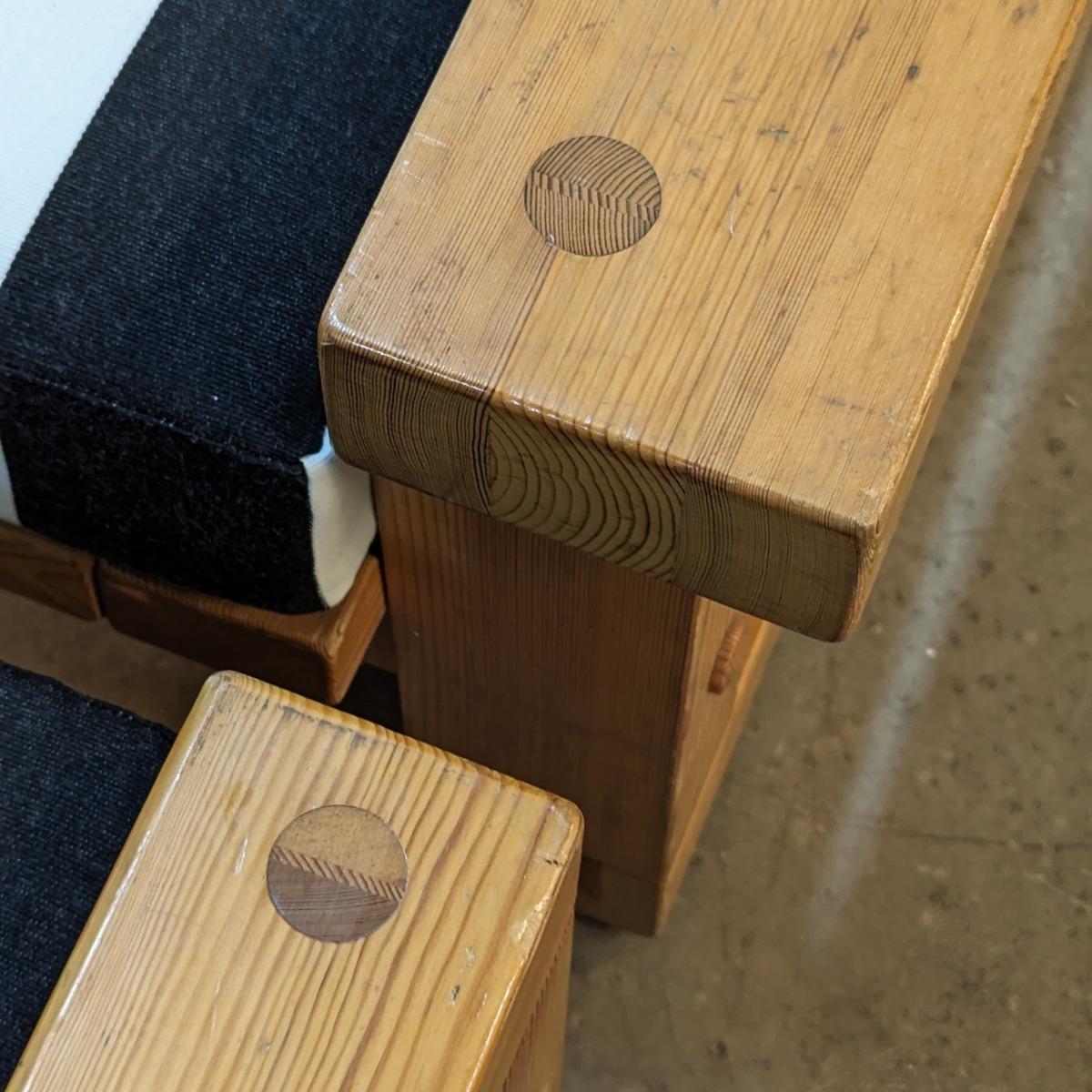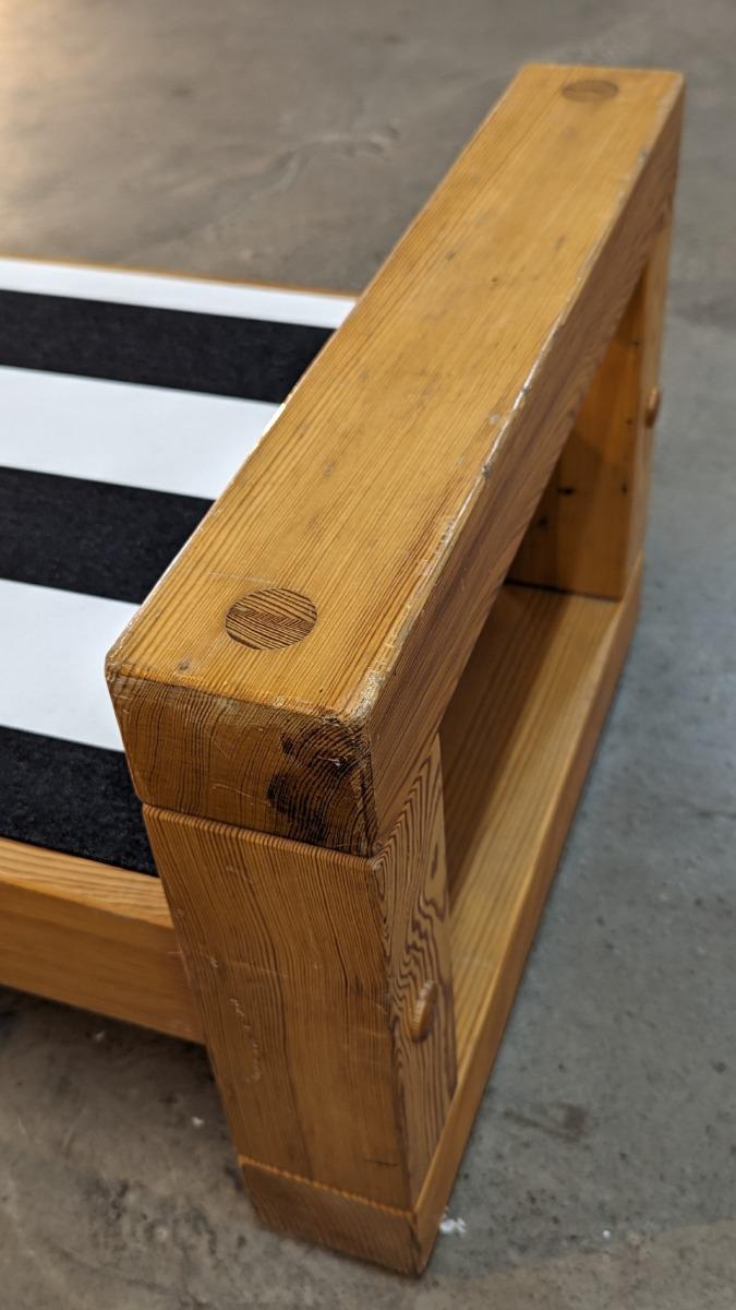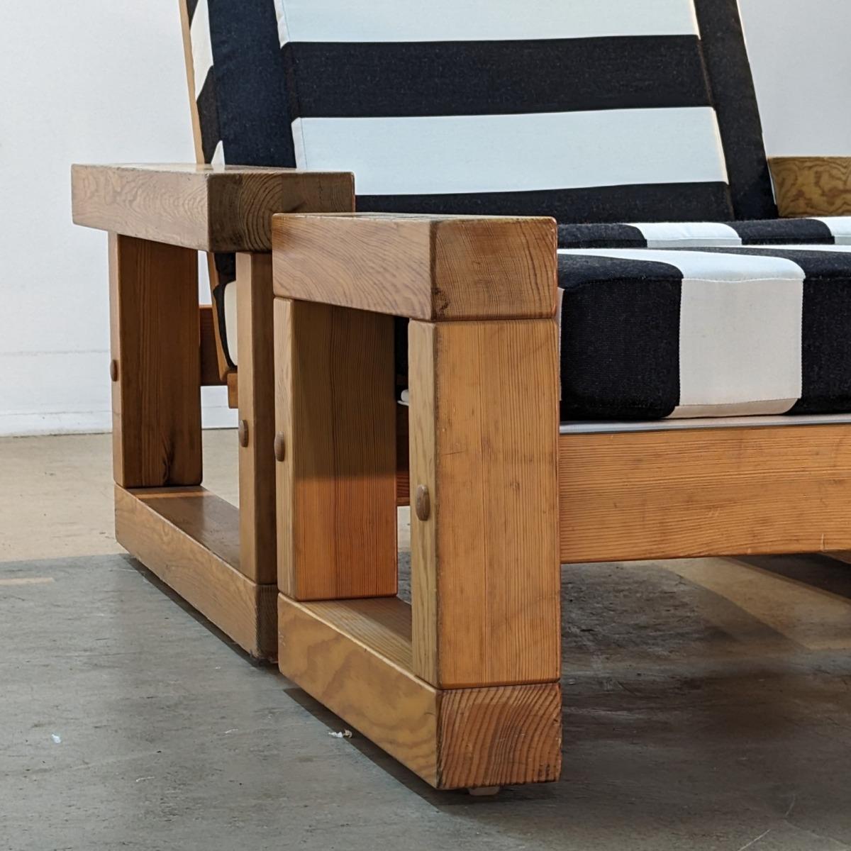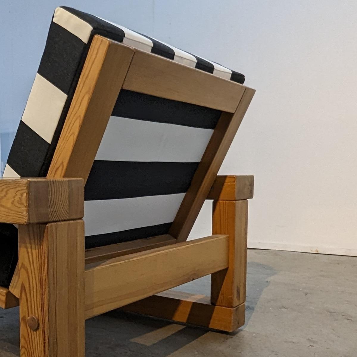 Fauteuil lounge au design scandinave, années 60. 2 positions d'assise. Avec un repose pieds. Coussins refait entièrement. Fauteuil : HD 70cm HA 37cm larg. 88cm prof. 79cm Ottoman : H37cm Long 80cm larg. 50cm