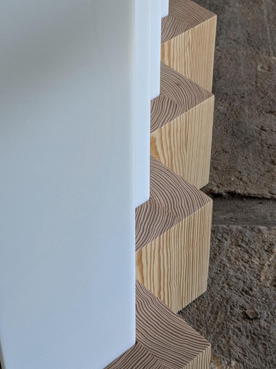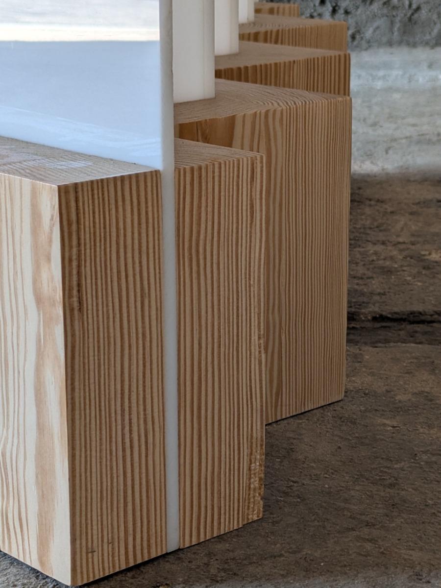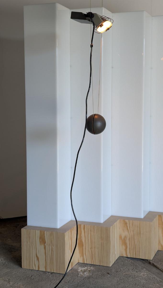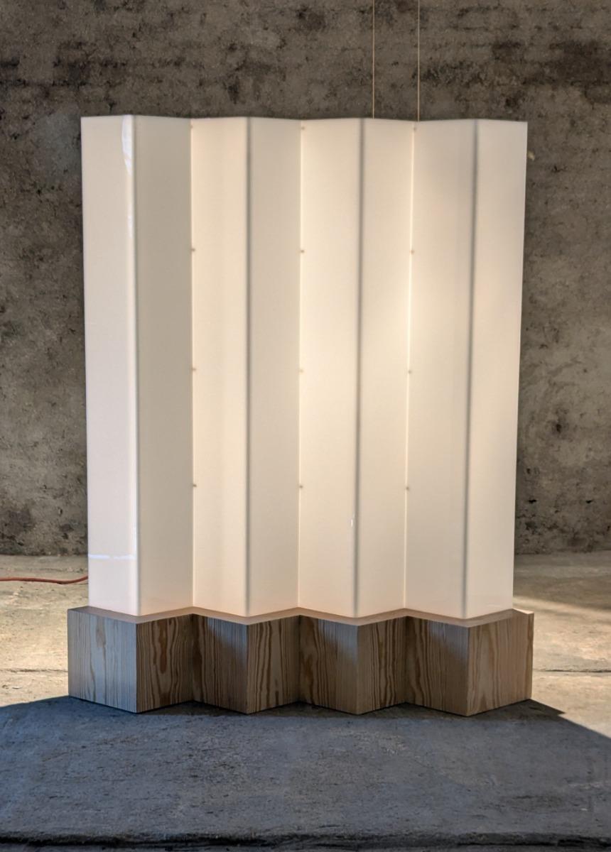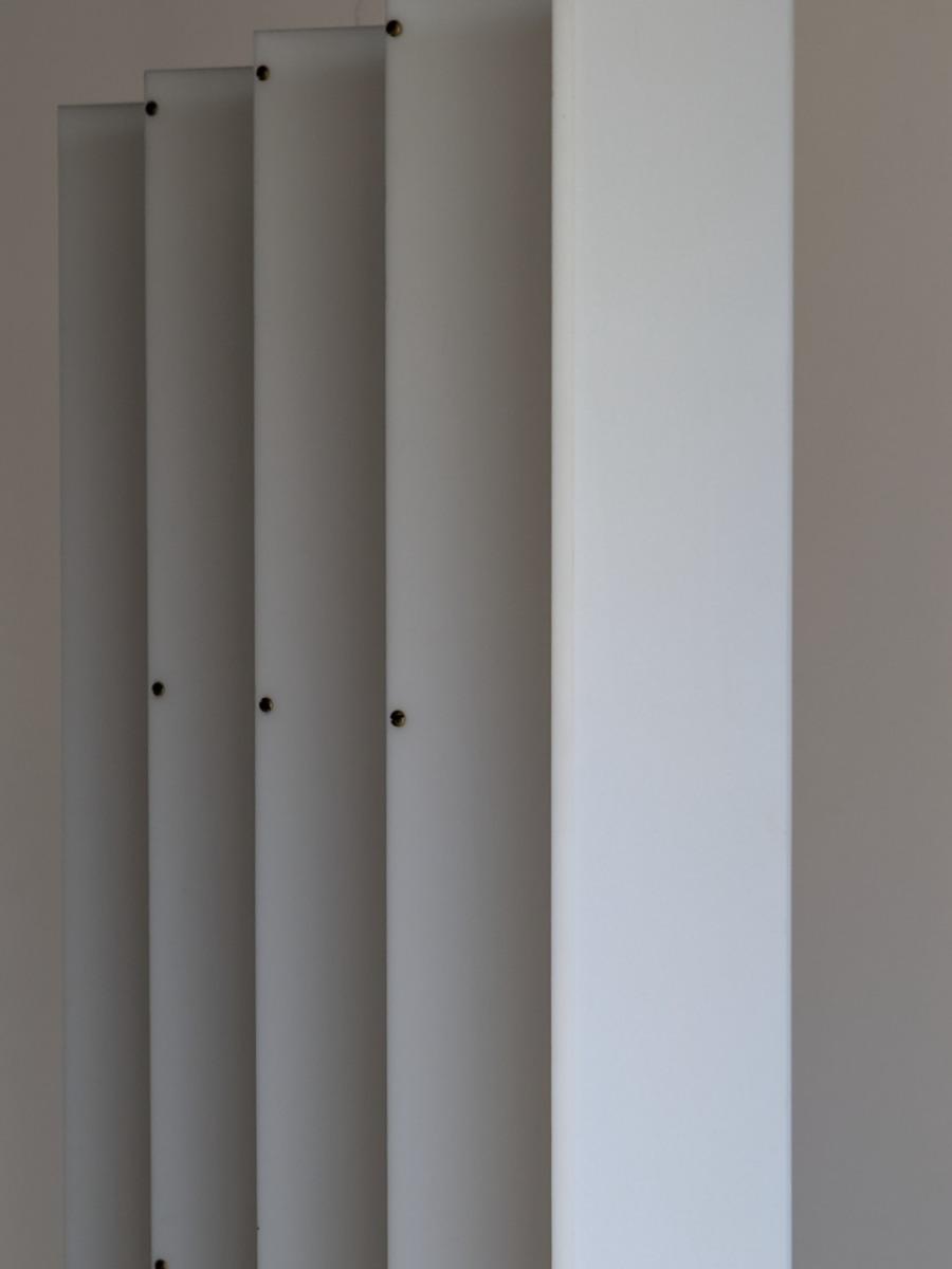 paravent au design graphique réalisé par notre studio créatif. Elements en acrylique datant des années 60 sur une base en pin jaune des Etats Unis. 2 paravents sont disponibles.